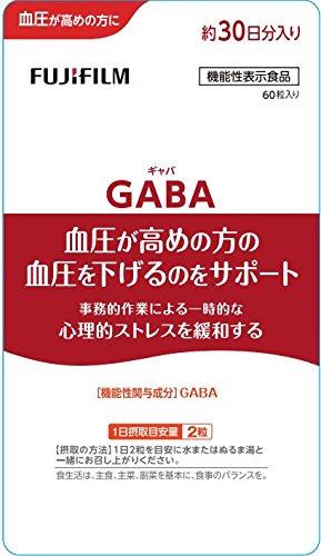 水またはぬるま湯でお召し上がりください。 【血圧を下げる(*1)。続ける健康ケア習慣(*2)。】*1 本品にはGABAが含まれます。GABAは、血圧が高めの方の血圧を下げる機能と、事務的作業による一時的な心理的ストレスを緩和する機能があることが報告されています。*2 食生活は、主食、主菜、副菜を基本に、食事のバランスを整え、適度な運動を行うこと。 【届出表示】本品にはGABAが含まれます。GABAは、血圧が高めの方の血圧を下げる機能と、事務的作業による一時的な心理的ストレスを緩和する機能があることが報告されています。本品は、事業者の責任において特定の保健の目的が期待できる旨を表示するものとして、消費者庁長官に届出されたものです。ただし、特定保健用食品と異なり、消費者庁長官による個別審査を受けたものではありません。【機能性表示食品 消費者庁届出番号】B321 【「GABA」で高めの血圧を下げよう】近年、男女ともに血圧が高めの方が増加傾向にあります(*1)。その原因の多くは、遺伝的体質・塩分の過剰摂取・飲酒・その他の生活習慣要因などが複合的に重なっているといわれています。理想的な血圧を維持するために生活習慣を見直すことがとても大切です(*2)。 GABAは、高めの血圧を下げる働きが注目されている機能性関与成分です。野菜や果物、穀物に多く含まれるアミノ酸の一種で、血圧を下げる機能があると考えられています。富士フイルムの「GABA」は、サトウキビ由来の原料を乳酸菌により発酵して作りました。*1 出典:日本人間ドック学会編、2015年「人間ドックの現況」、表12より *2 出典:厚生労働省「e-ヘルスネット」より引用(一部改変) 【召し上がり方】1日の摂取目安:2粒【摂取の方法】水またはぬるま湯でお召し上がりください。 ■重要なお知らせ