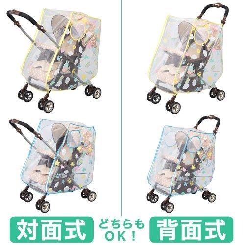 商品紹介・これさえあれば、お子様も快適にお出かけできます。 ・カバーの前面が開閉自由な上下からのファスナー付なので背面式だけではなく対面式にもご利用でき、お子様の乗り降りも簡単に出来ます。 ・ファスナーを開ければ換気・通気性も良好でムレや曇りの心配もありません。 ・雨・風・ホコリなどからお子様を守ります。 ・本体が透明なので、お子様の表情も見ることが出来ます。