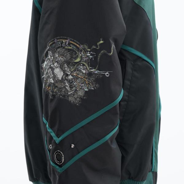 大胆な構図で描かれた風神雷神の図像を、全面にプリントしたリバーシブルMA-1。