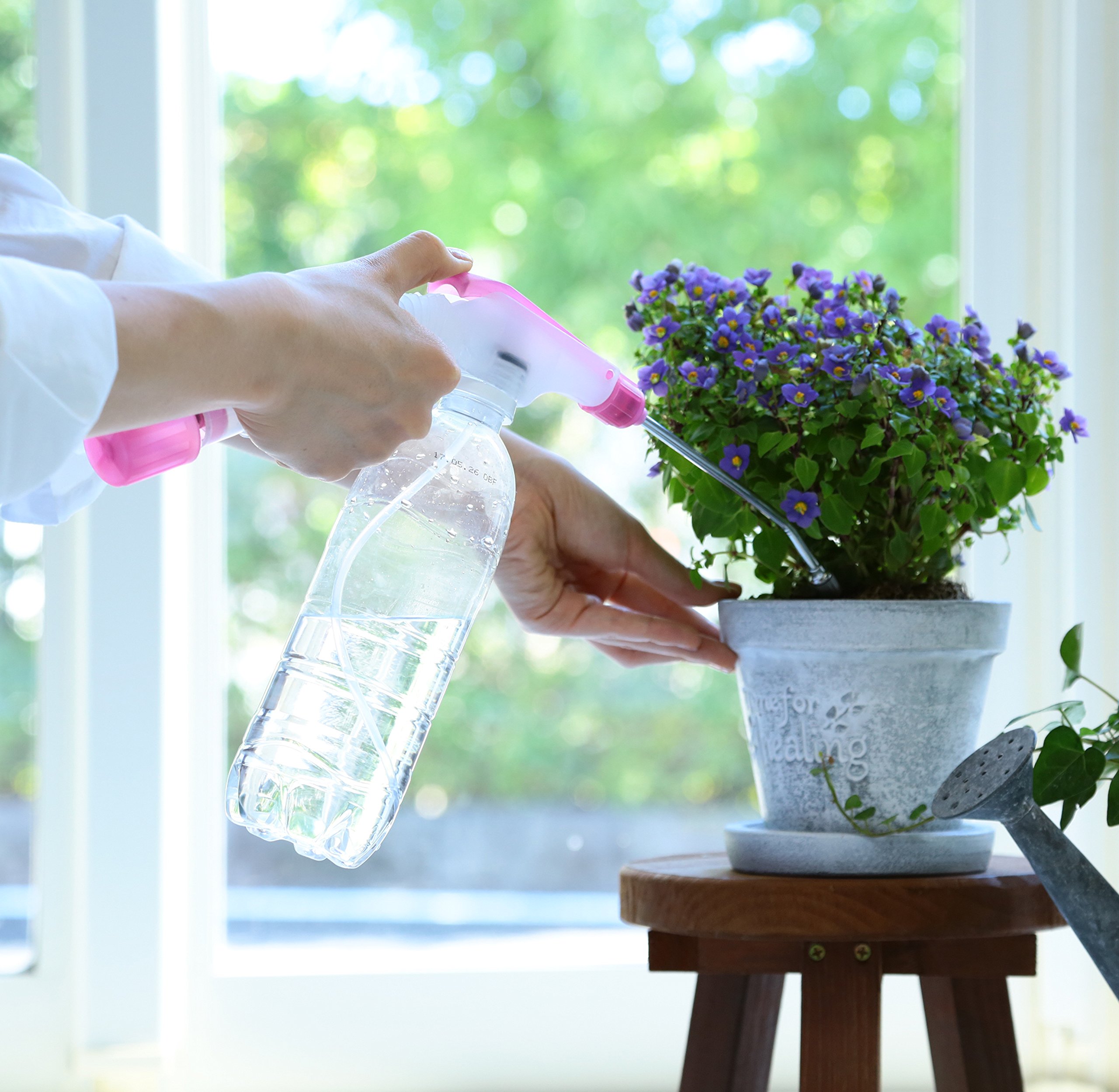 本体サイズ:長さ22×幅12.5×高さ3.2cm ロングノズル:長さ17×幅2×高さ2cm素材:本体/ポリプロピレン、チューブ/ポリエチレン、ノズル/真鍮(クロムメッキ)ペットボトルを再利用! 水流の力で汚れを吹き飛ばします ※炭酸飲料ペットボトルがおすすめ先端の水流調整ツマミで、"ミスト"と"ジェット"の二種類のスプレーに切り替え可能! 広範囲のミストスプレーは植物のお手入れ(ガーデニング)に、狭い範囲のジェットスプレーは各所の掃除に最適ロングノズルが、エアコン・網戸・サッシ溝などの細い隙間掃除に大活躍! 周りも汚さずピンポイントに掃除できますしなやかなソフトチューブなので、逆さにしても使用可能重曹やクエン酸などの粉末を混ぜて使用