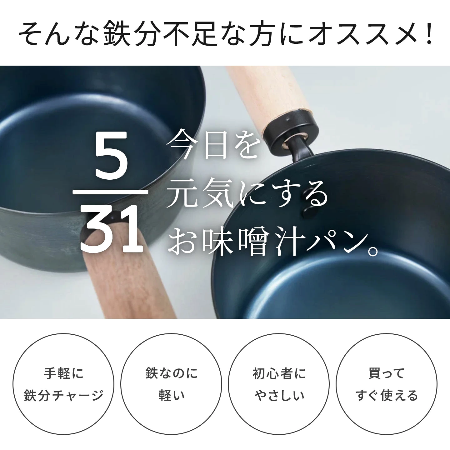 【5/31 今日を元気にするお味噌汁パン】毎日無理なく、継続して鉄分を摂るために。毎日元気でいるために大切なのは、良い習慣を続けていくこと。現代女性の鉄分不足に着目した製品として、ありそうでなかった「お味噌汁」に特化したお鍋です。