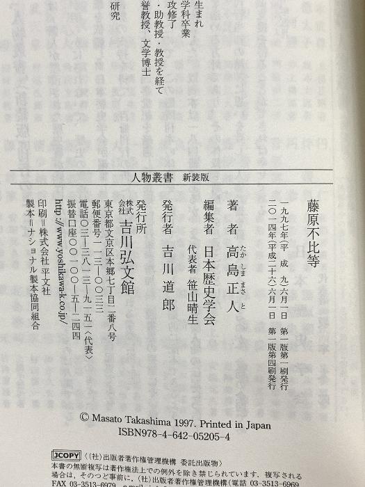Fujiwara no Fuhito (Biographical Series, New Edition 212) Yoshikawa Kobunkan Masato Takashima
