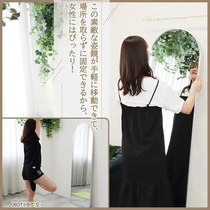 Full-length mirror, 2-way wall-mounted and stand-up mirror, shatterproof, stylish wall mirror, suitable for rental properties, lightweight aluminum mirror, for bedroom, entryway, bathroom.