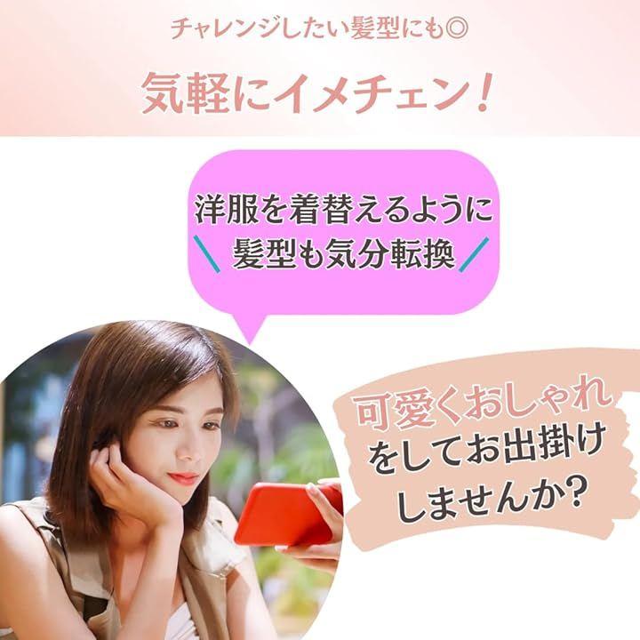 耐熱ファイバー素材なので、コテやヘアアイロンで自由にアレンジ可能。