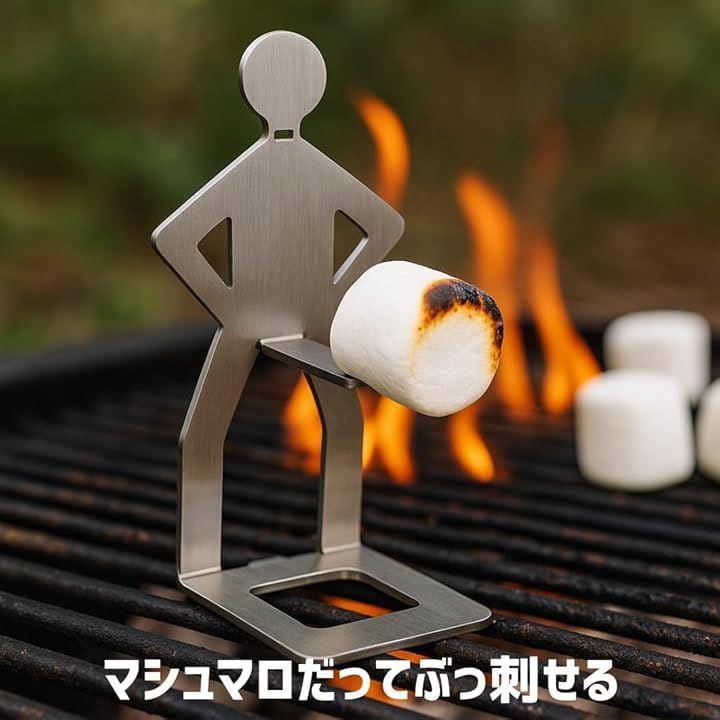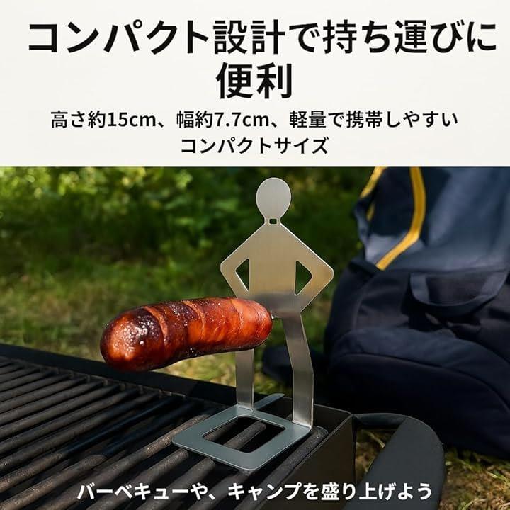 人型デザインのステンレス製ホルダーは、ソーセージを差し込むとまるでキャラクターが食材を掲げているように見える遊び心満載のアウトドア用品。