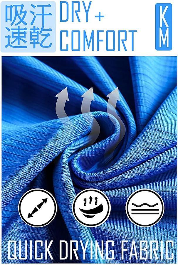 「吸汗速乾」吸汗速乾性が優れていることを示し、汗を素早く吸収、拡散、ウェア内を快適な状態に保ちます。