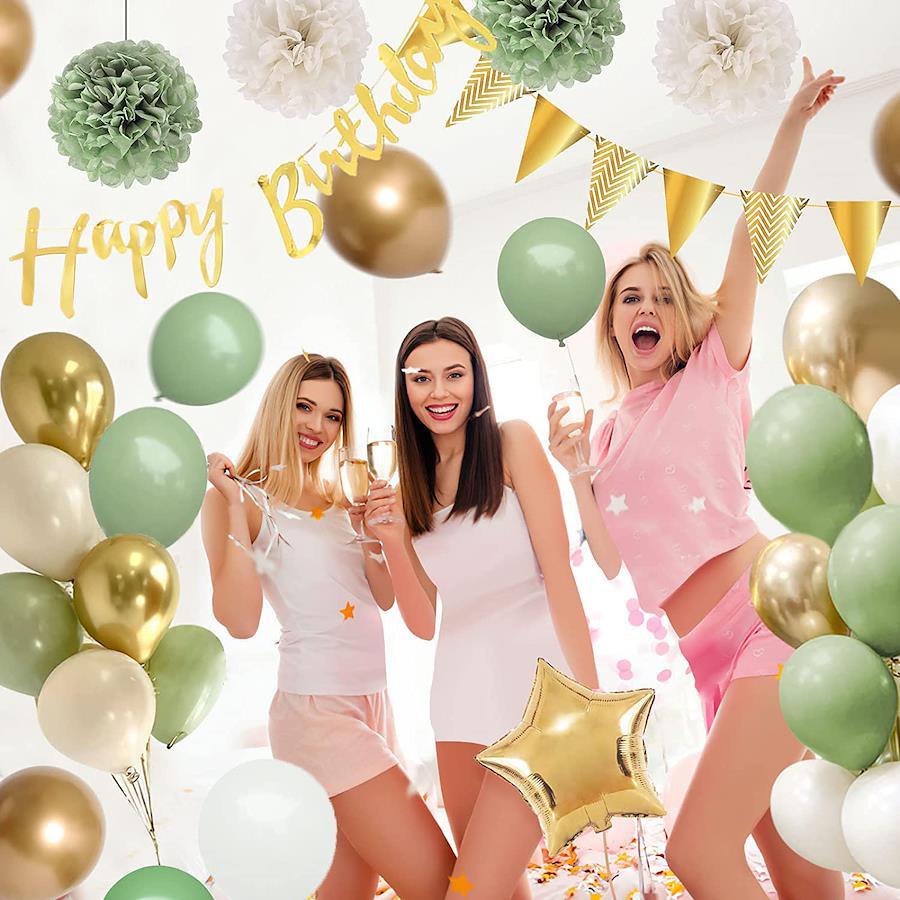 5営業日以内に発送ー【新品未開封品】誕生日 飾り付け セット内容 :"Happy Birthday" バナー×1個フラッグガーランド×1個星の風船×1個(ゴールデン)10インチのラテックスバルーン×12個(グリーン)10インチのラテックスバルーン×12個(ホワイト)10インチのラテックスバルーン×12個(ゴールド)5インチのラテックスバルーン×5個(グリーン)5インチのラテックスバルーン×5個(ホワイト)5インチのラテックスバルーン×5個(ゴールド)両面テープ×1巻バルーンストリップ X1個Happy Birthday ケーキインサート1個ペーパーフラワーx4個(25cm)