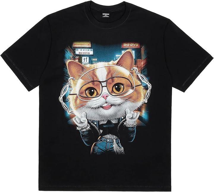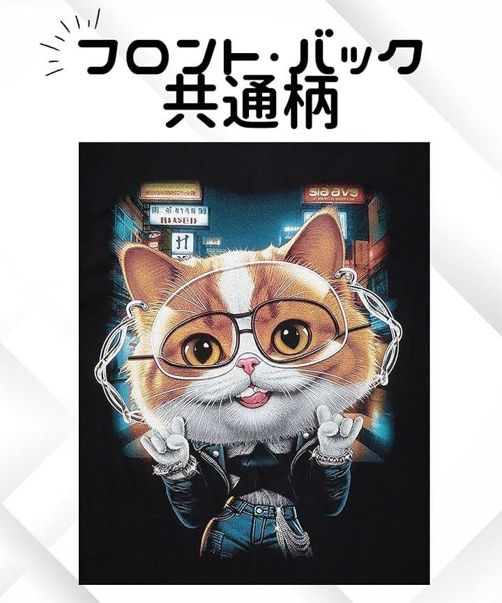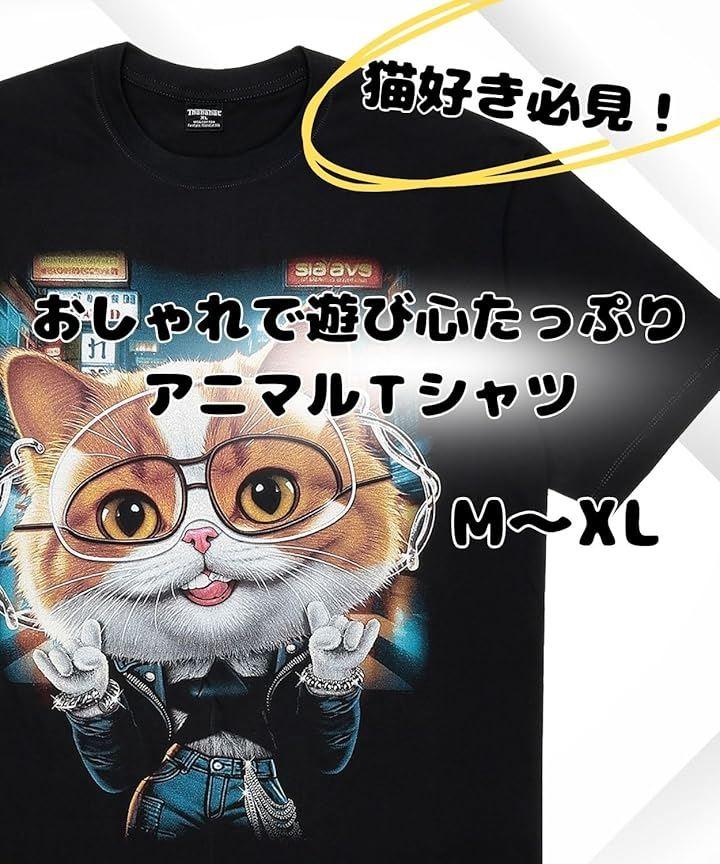 「おしゃれでユニークな猫デザイン」目を引くおしゃれな猫のプリントが特徴のTシャツ。