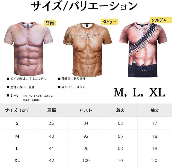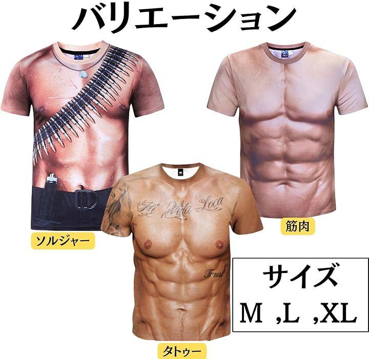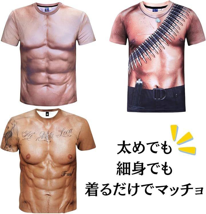 「立体感抜群、リアルな3D筋肉プリント」胸筋・腹筋・背筋・上腕…全身を立体的に表現したリアルな筋肉デザイン。