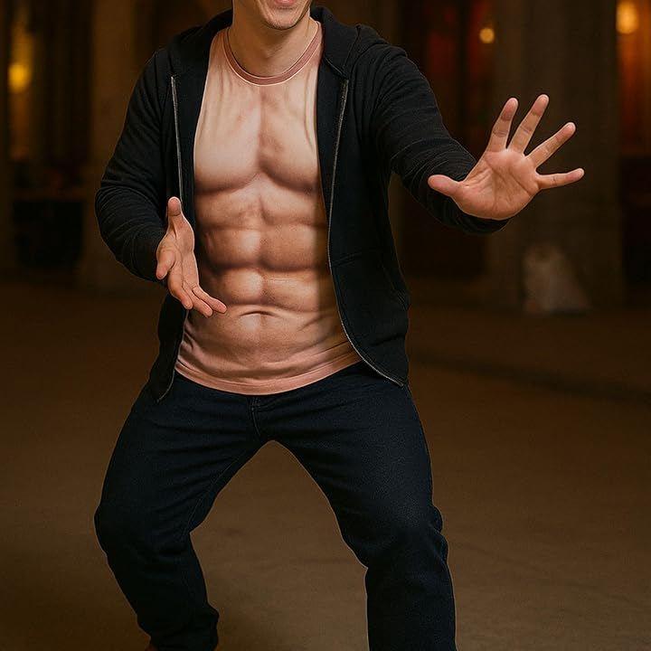 このマッチョTシャツは、着るだけで簡単に“筋肉美ボディ”が手に入るコスプレアイテム。