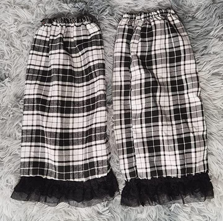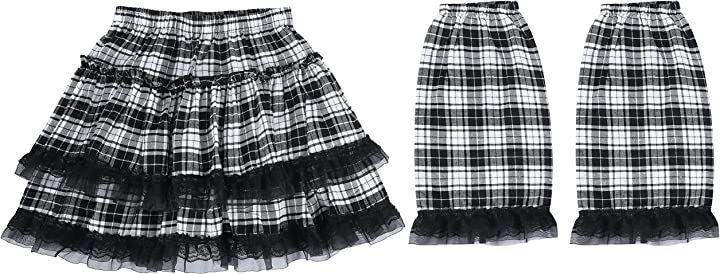 気持ち大きめサイズまで対応のチェック柄スカートに、同色のレッグカバーをセット。