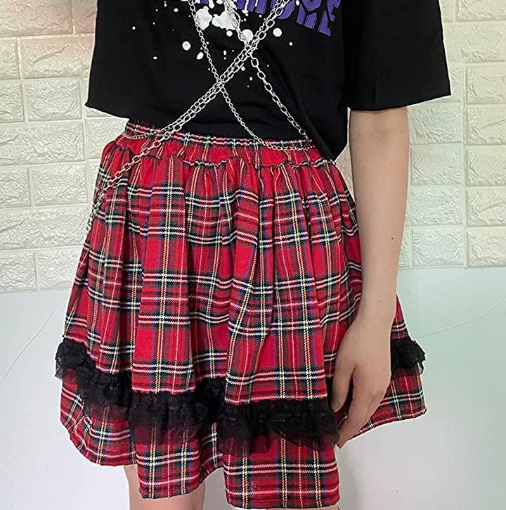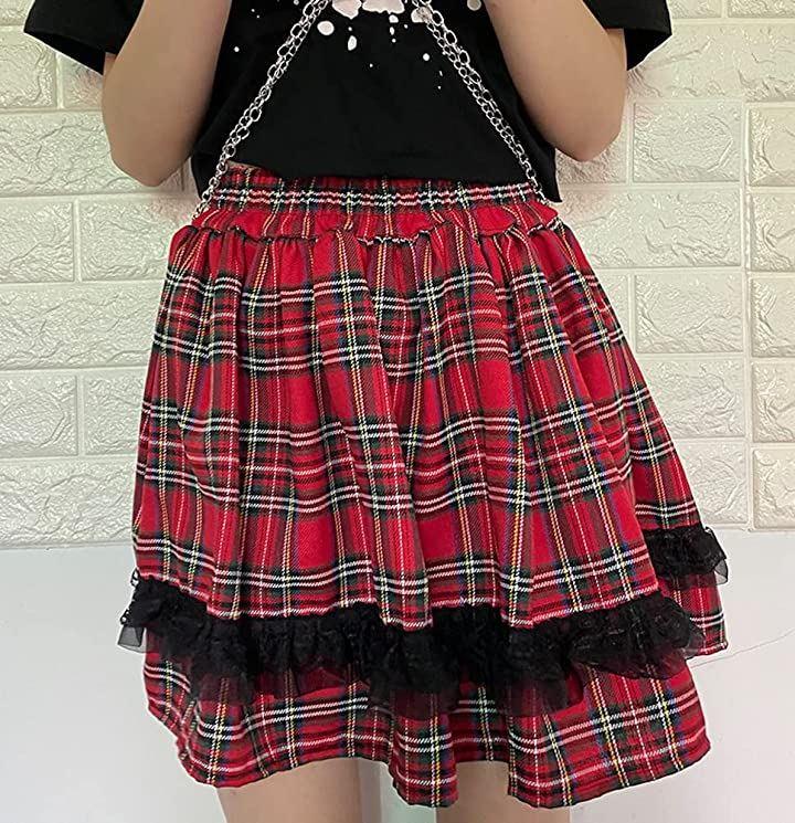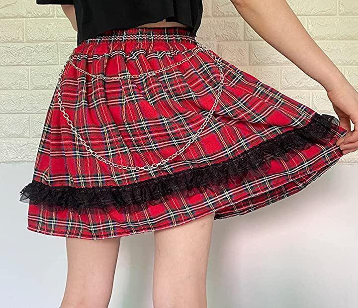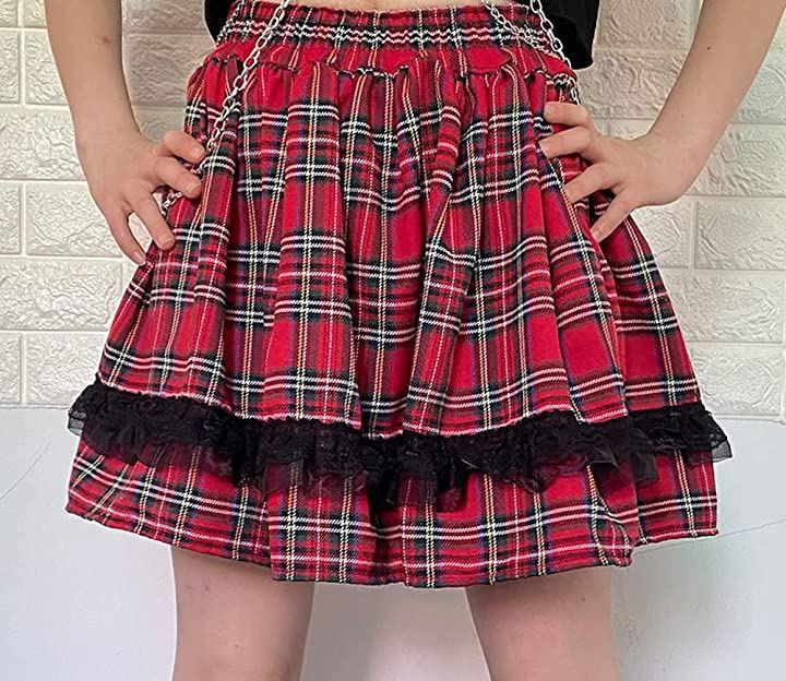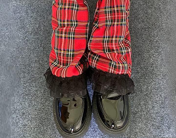 気持ち大きめサイズまで対応のチェック柄スカートに、同色のレッグカバーをセット。