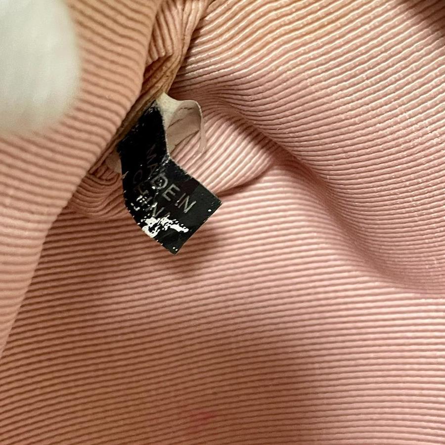 多少の使用感あります。詳細は写真をご参照ください。内側の布地全体に使用に伴う薄い汚れや変色(くすみ)がございます。また、底付近に小さな赤い点状の色移りが数か所確認できます。