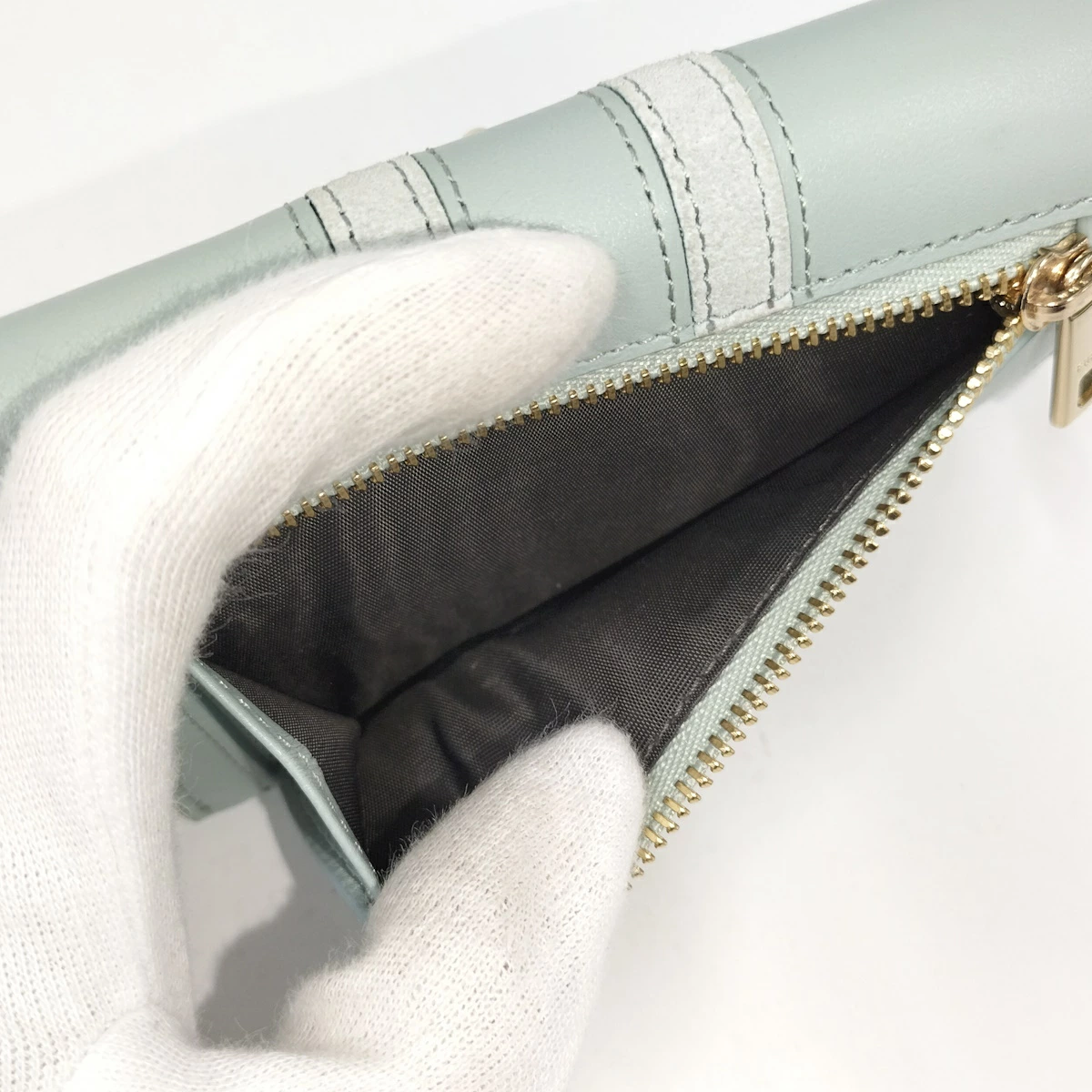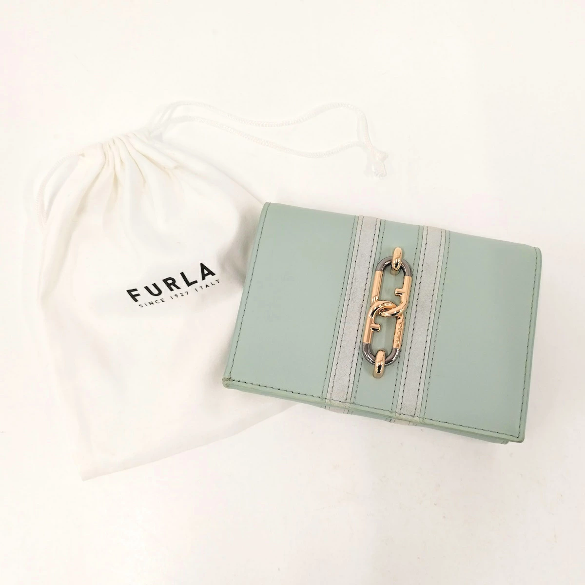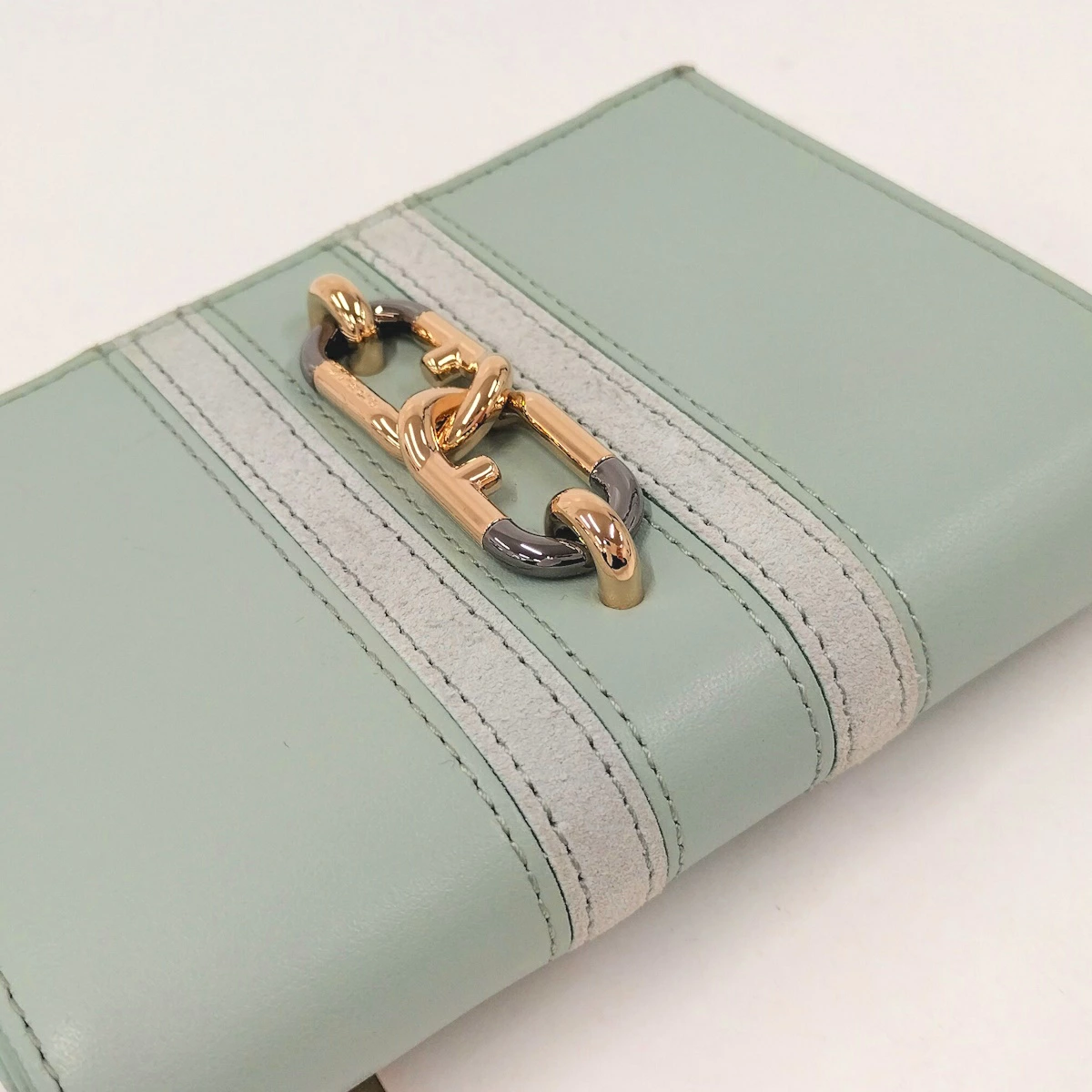 [商品情報]・カラー:ミントグリーン・素材/ライン:レザー・サイズ:最大約 W13×H9(cm)