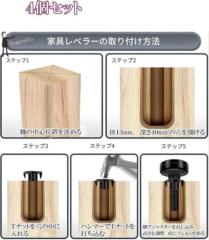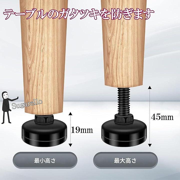 テーブルのガタツキを防ぐ、木製家具用、高さ調整アジャスター4個セットです。
