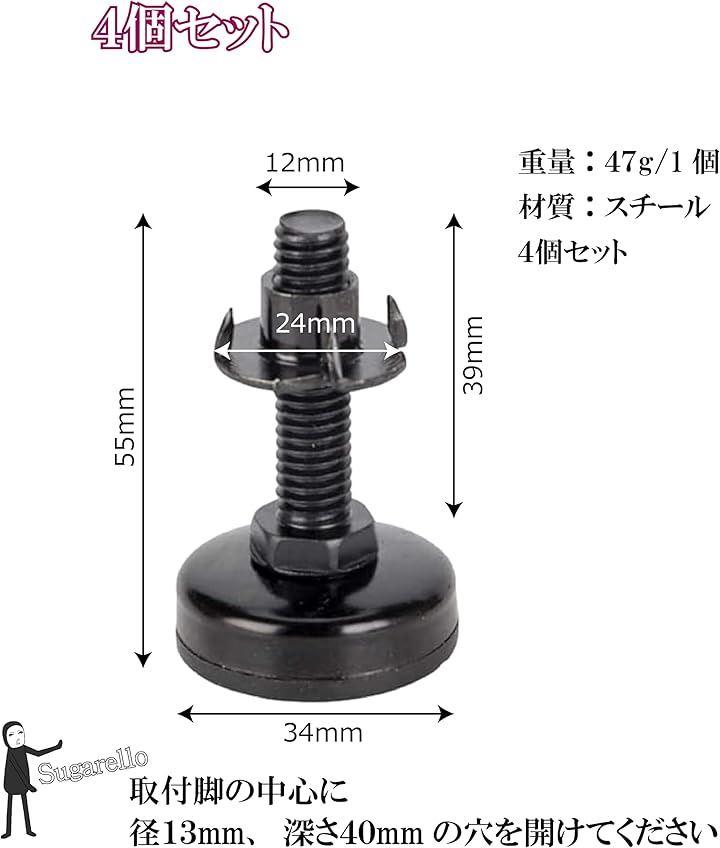 耐荷重は最大で598kg(4個で)、スチール製の本格的なアジャスターです。