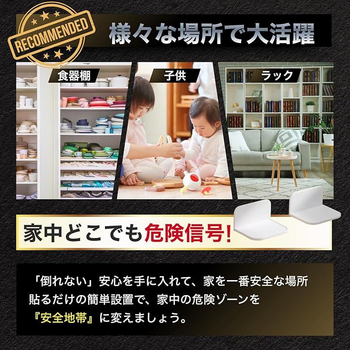 「衝撃に強いトリプルロック」 L字型の本体が「家具」と「壁(または床)」に密着。