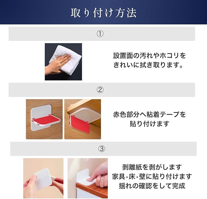 「穴あけ不要・賃貸OK」 ドライバーやドリルなどの工具は一切不要。