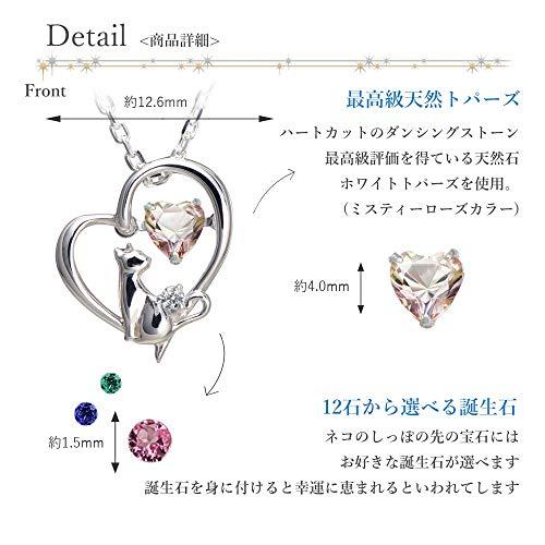 お好みの誕生石が選べる、今大人気のレディース用、ネコモチーフネックレス。キュートなネコとキュートなハートの相性はバツグン!立体的な構造になっているため、正面からも斜めから見ても胸元を際立立てます。しっぽの部分と誕生石で形成される隠れハートも特徴!
