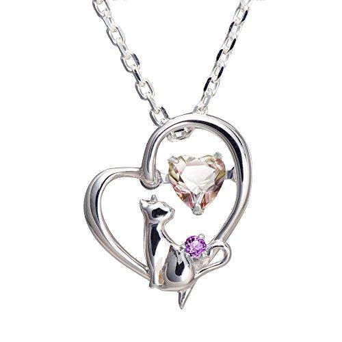 [Future Angel] Necklace for Women, Heart, Cat, Dancing Stone, Silver, Choice of Birthstone [Champagne Gold Color] February Amethyst