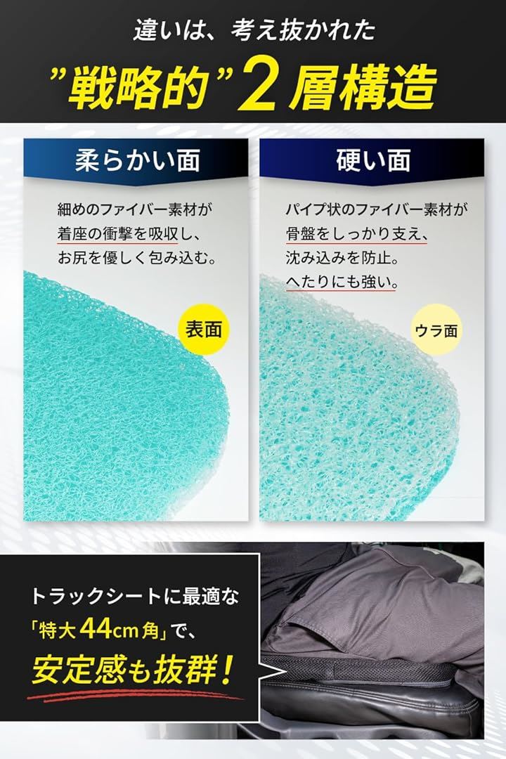 長時間の運転でも快適に座れる、トラックドライバーのためのシートクッションです。