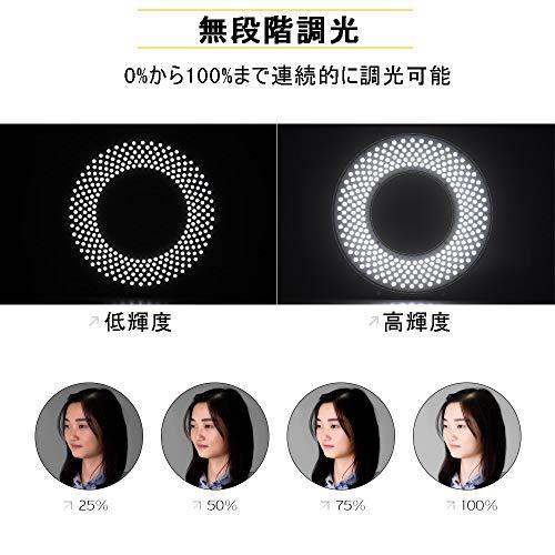 高品質LED300灯を搭載し、リングライトの照明が2205 lux@(1m)に達せ、背面にある調整ノブを回すと、明るさを0から100%まで無段階調整できます。光が柔らかく流し、目にやさしくて使用目的に合わせ、明るさを変えることができますサイズが20.9㎝(幅)×20.2㎝(高さ)×3.3cm(奥行)、重量がわずか350gのマクロリングライトです。小型軽量で、撮影や持ち運びに便利です。ビーム角度が50°、ポートレート、物撮り撮影、イベントやビデオ撮影にもピッタリですTLCIが99(97±2)、CRIが97(95±2)の高演色性で、被写体の持つ色を忠実に再現できるビデオライトです。全面を均一に照らし、色が自然で生き生きとしています。小さいお手軽サイズでも瞳にバッチリ、大きなキャッチライトは目を生き生きとみせますソフトボックスやディフューザーランタンボックスなどアクセサリーをカンタンに取り付けでき、光をスムーズに流し、フリッカーレスです。L型アーティックレーティングアーム及び15㎜レールマウントを選択でき、DSLR専門的なアクセサリーに対応、取り付けできます67~82mmと72~82mm、77~82mmのレンズアダプターリングとレンズマウントが付属され、カメラレンズに簡単に装着でき、また1/4”-20ネジ穴が背面の下にあるので、スピゴットや他の取り付け装置に装着できます。コンパクトサイズの収納バッグ付き、輸送又は持ち歩きにおいてライトを衝撃から守ります