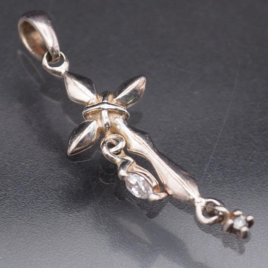 G552 Diamond-like 925 Stamped Pendant Top Cross Design Silver Charm Head