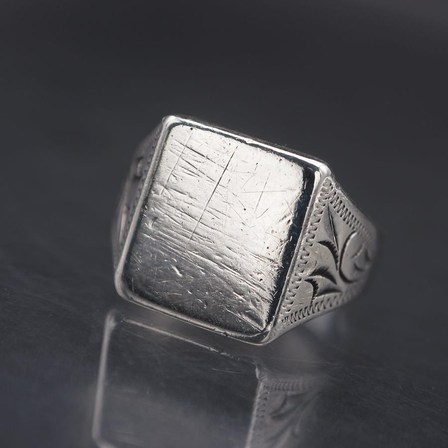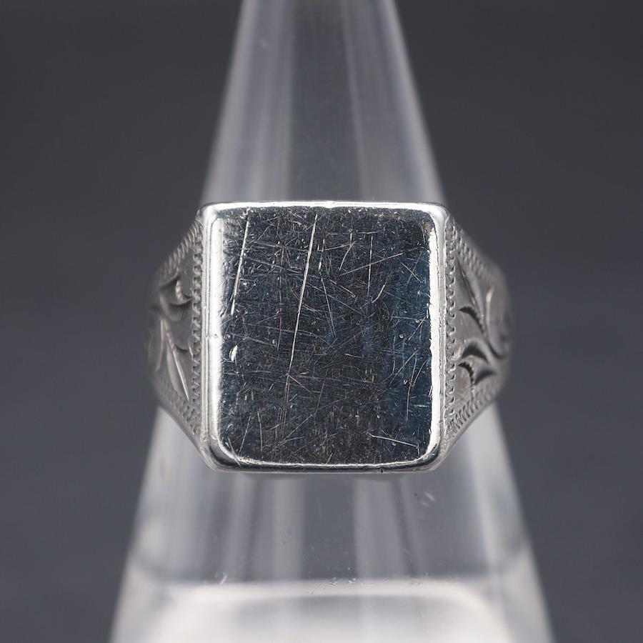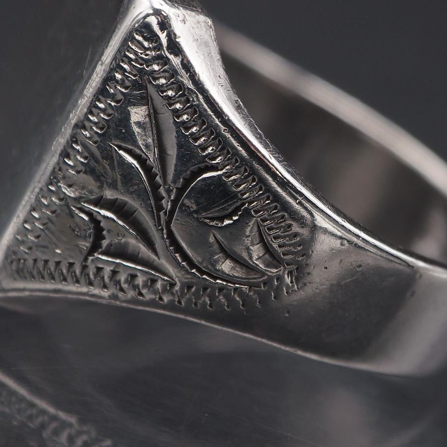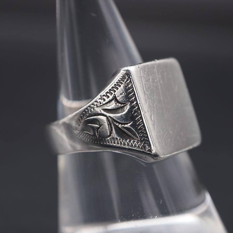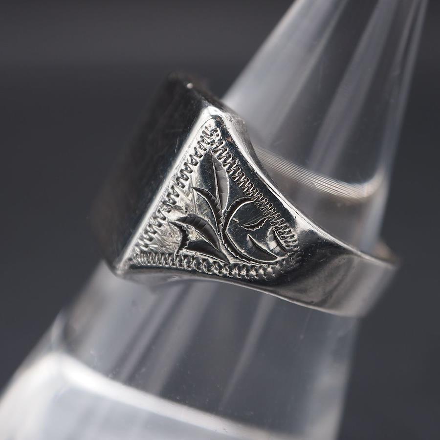 G566 Vintage Silver Engraved Signet Ring, Size 16