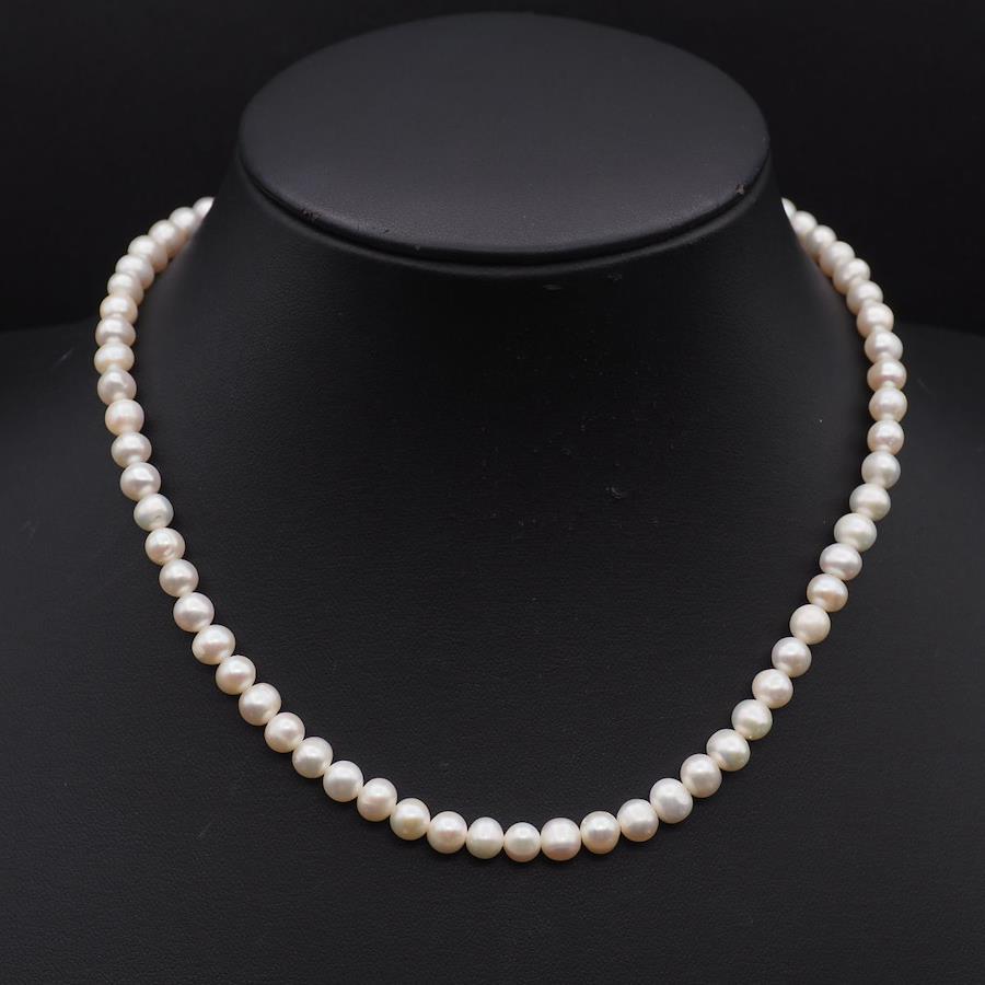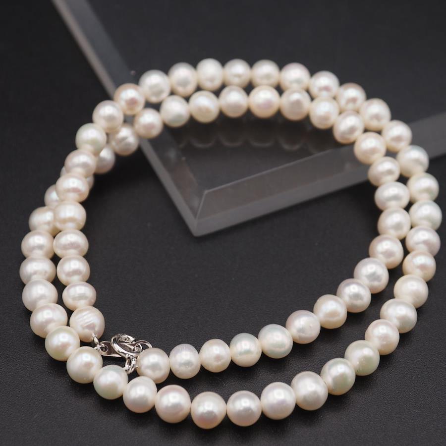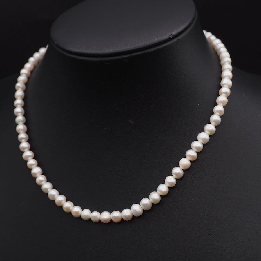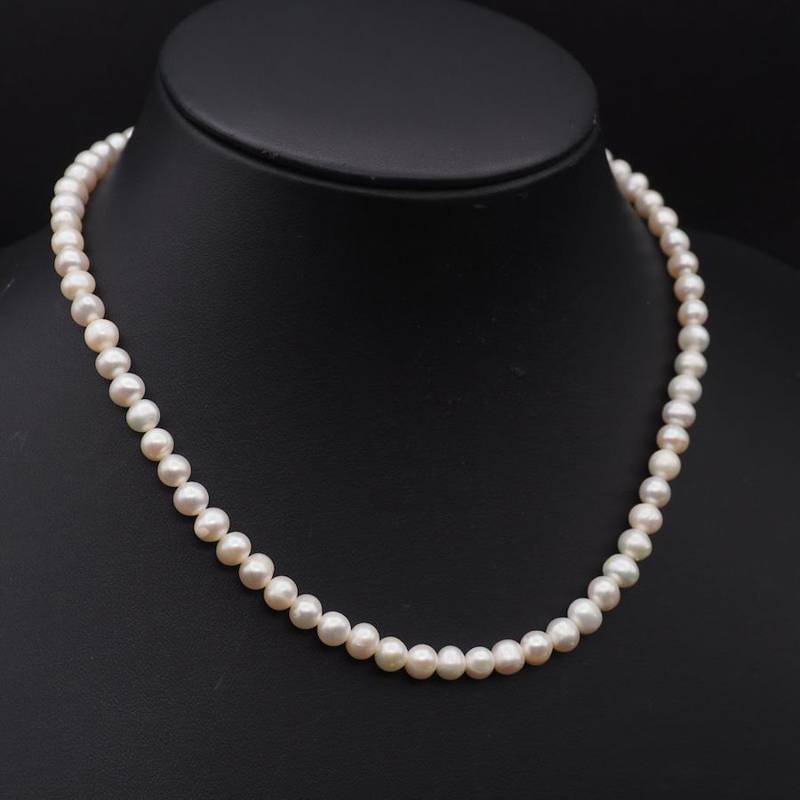 G614 Freshwater Pearl Necklace, Stamped in Silver (SILVER925), June Birthstone