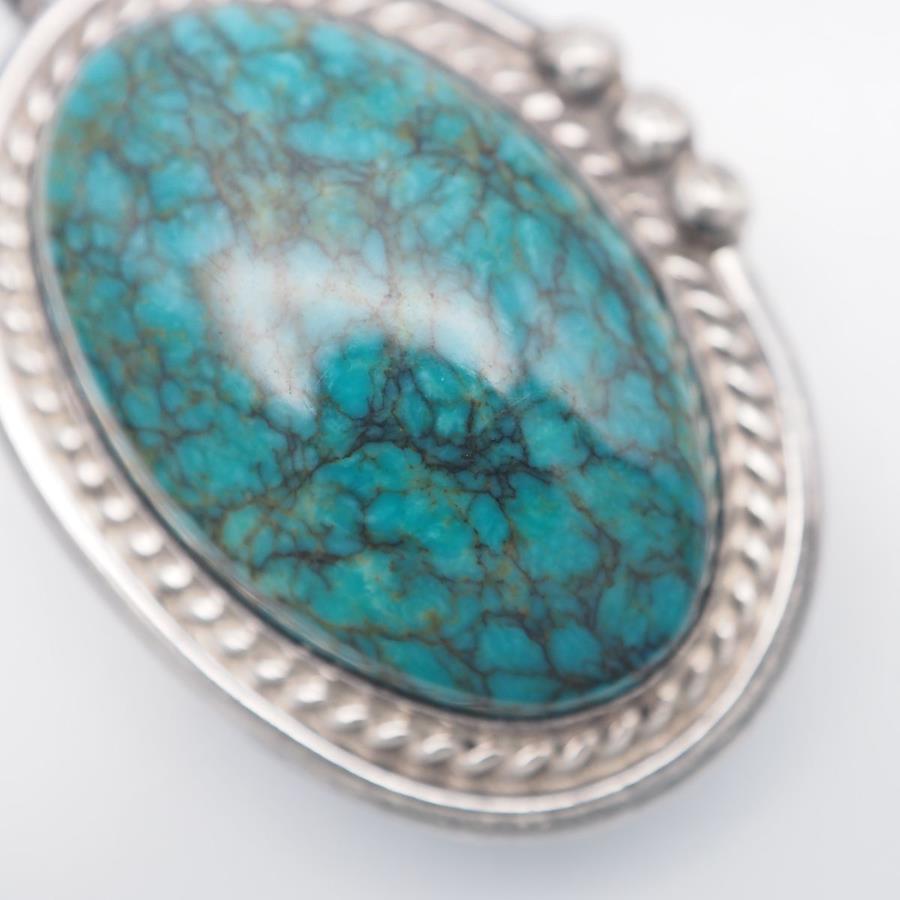 G621 Turquoise Pendant Top with J.A.C. Sterling Stamp, Silver Charm Head, Vintage Design, December Birthstone
