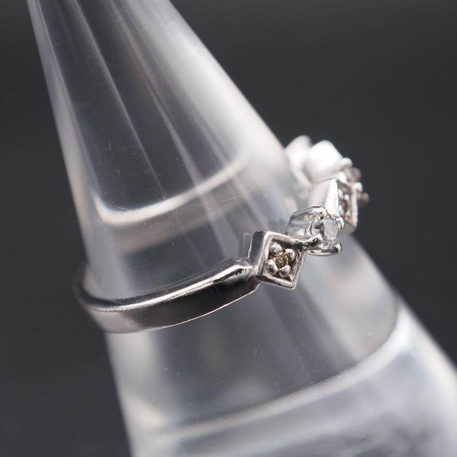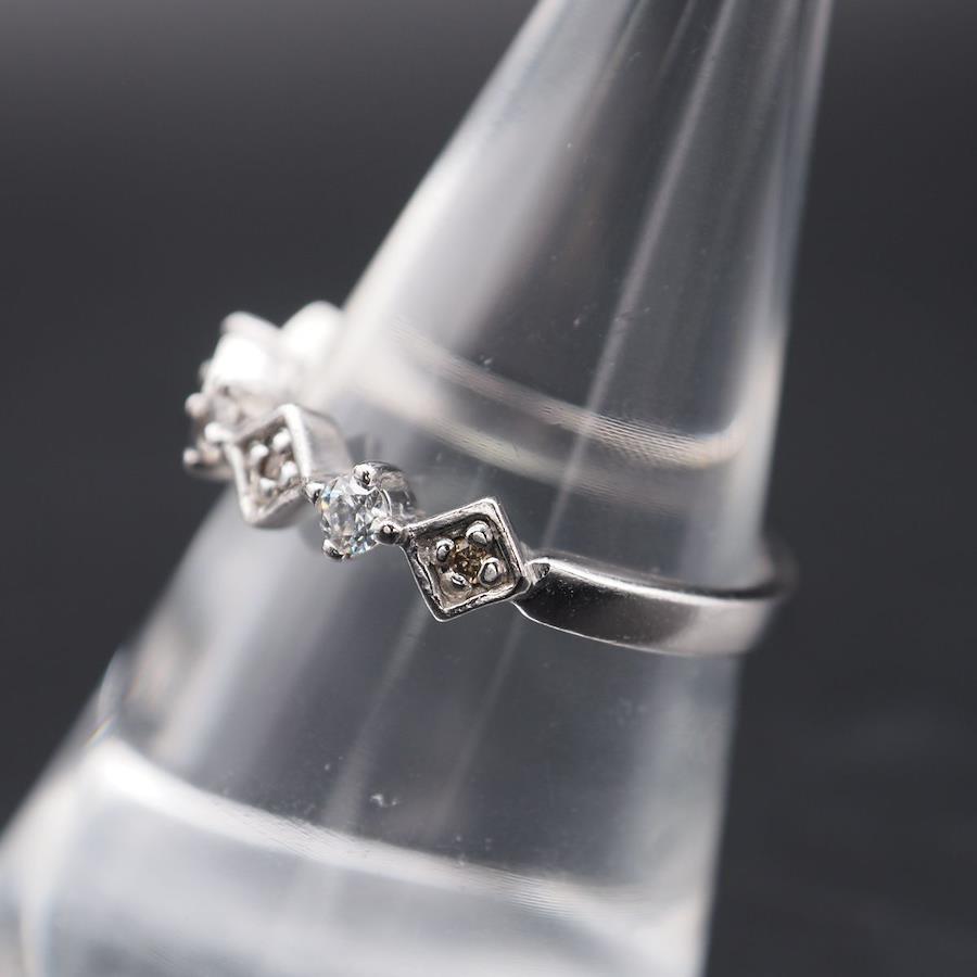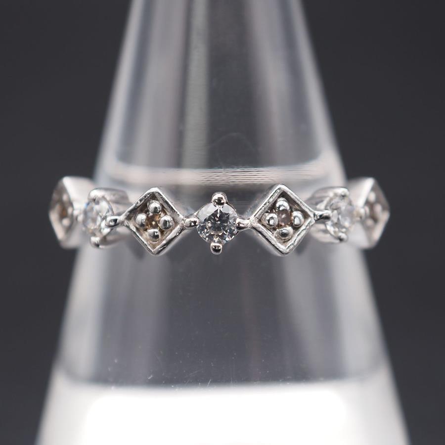 小さい方の4石のみダイヤモンドです。多少の擦れ、小傷、若干の歪みが見られますが、比較的に状態は良いです。