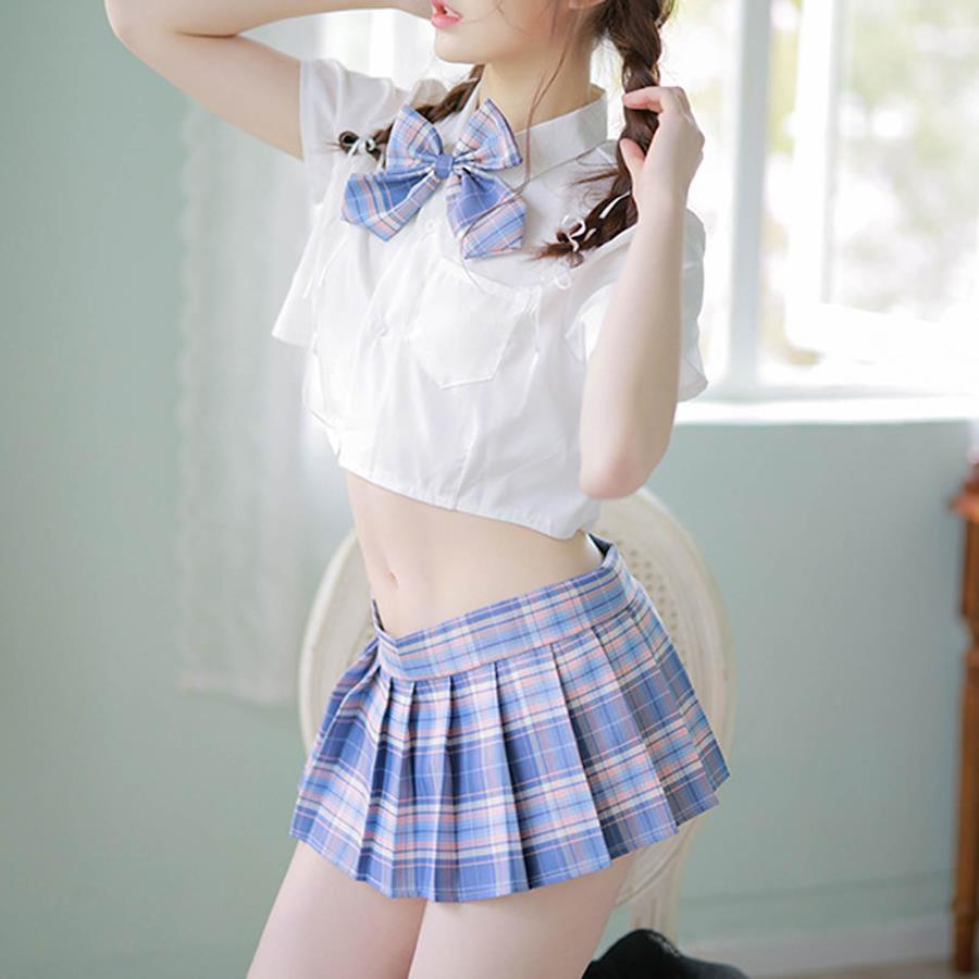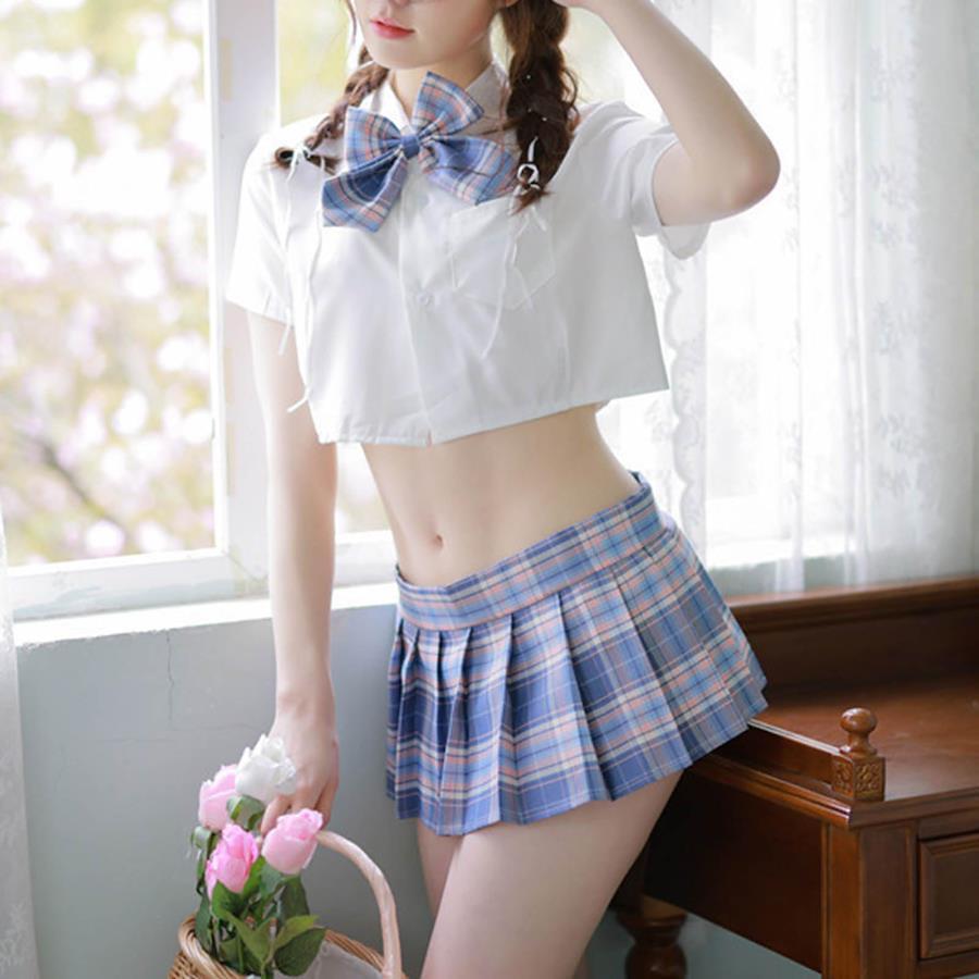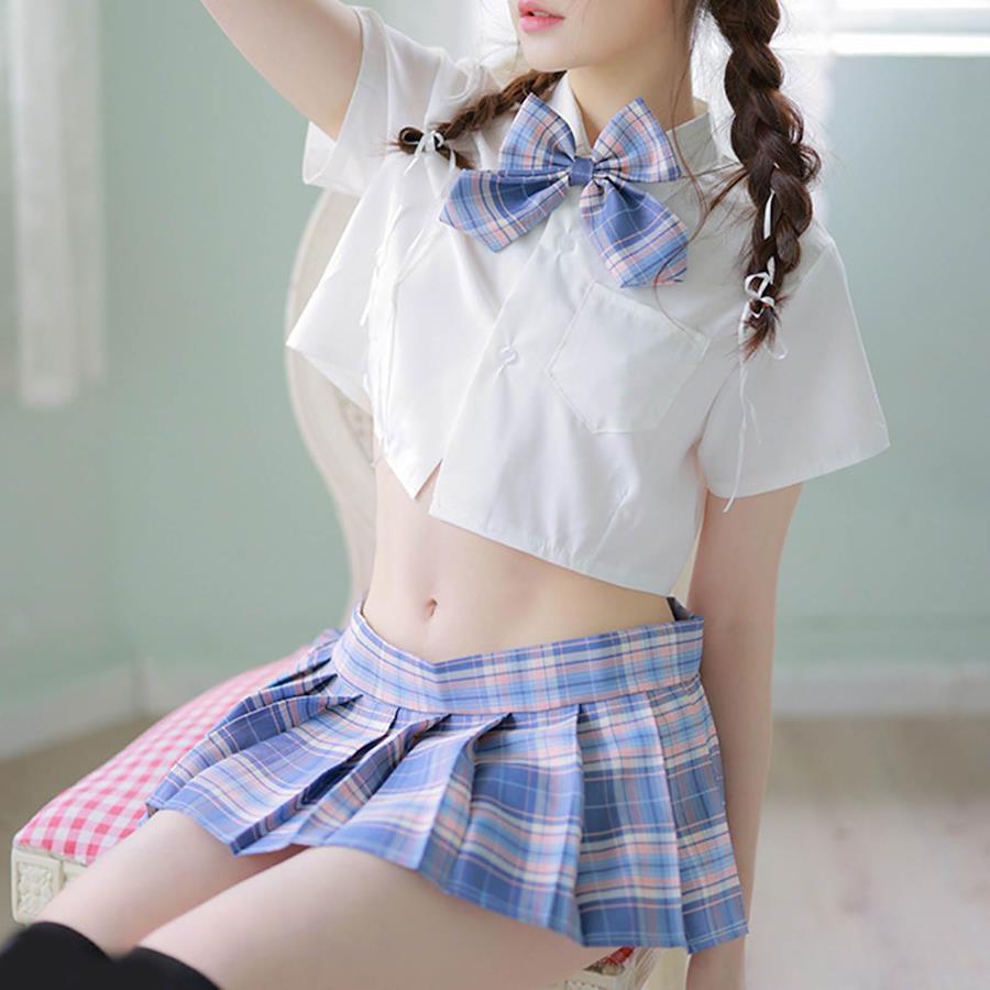 Gabrioir Cosplay Sexy Lingerie Uniform 4-Piece Set for High School Students, Sailor Uniform, Top and Miniskirt