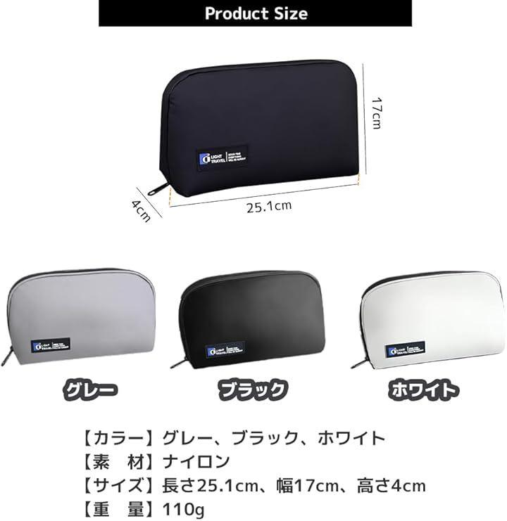 「カラー」グレー、ブラック、ホワイト「素材」ナイロン「サイズ」長さ25.1cm、幅17cm、高さ4cm「重量」110g