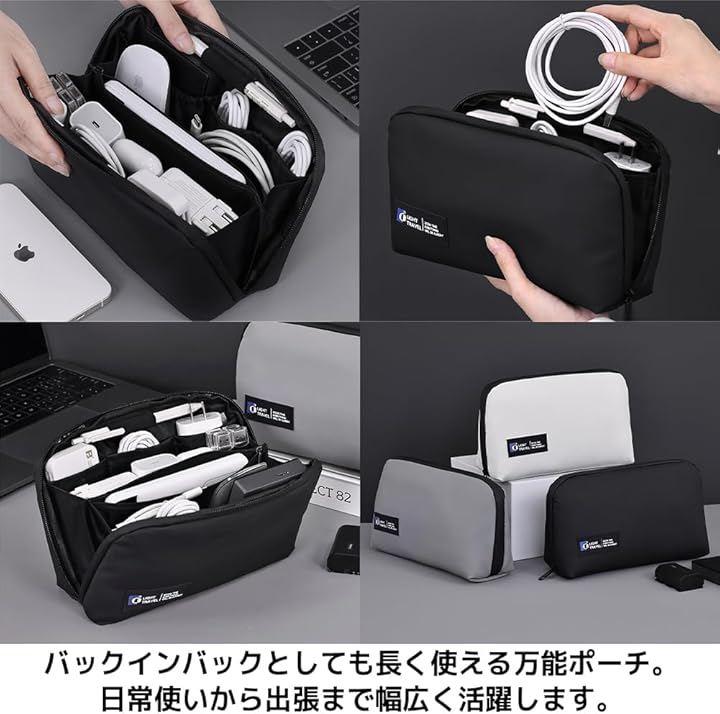 スマホの充電器やケーブルをすっきり収納でき日常の持ち歩きや旅行にもおすすめです。