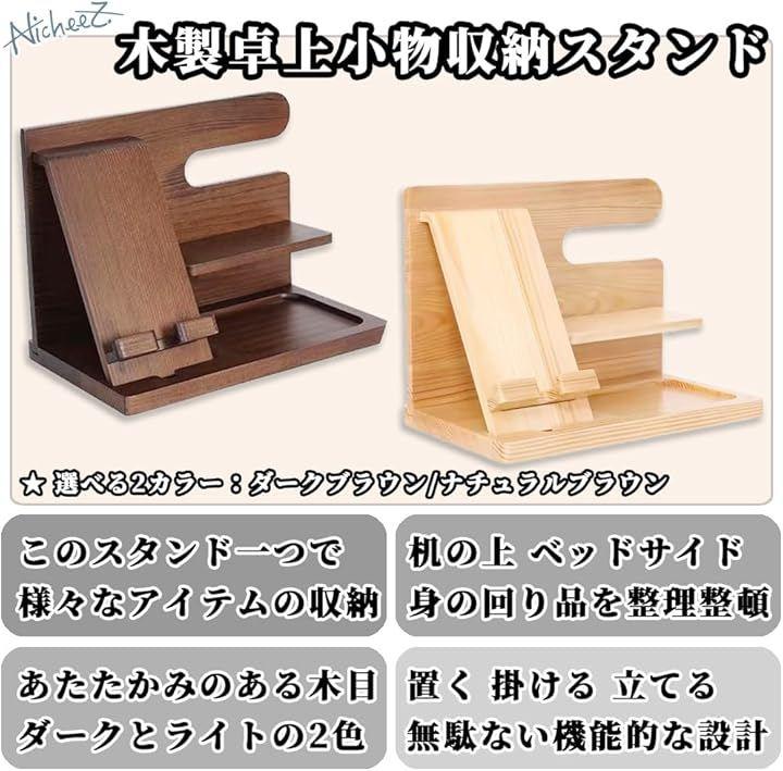 「商品内容」木製卓上小物収納スタンド 材質:木 カラー:ダークブラウン/ナチュラルブラウン サイズ:幅/約25.5cm 奥行き/約15cm 高さ/約19cm