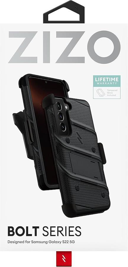 ブランド:Zizo (米国)、対応機種:Galaxy S22 (2022)、商品内容:ケース本体1pcs、液晶保護ガラス(指紋認証非対応)、ランヤード、各1pcs