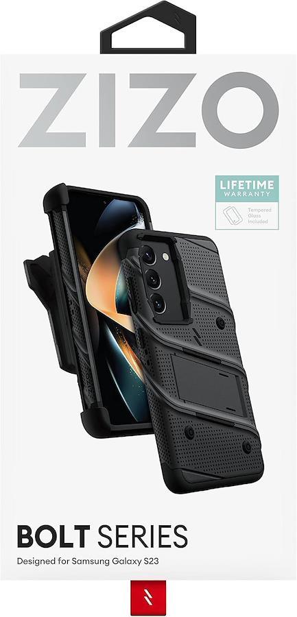 ブランド:Zizo (米国)、対応機種:Galaxy S23 (2023)、商品内容:ケース本体1pcs、液晶保護ガラス(指紋認証非対応)、ランヤード、各1pcs