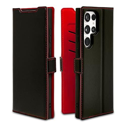 Galaxy S23 Ultra 薄型手帳ケース サイドマグネット カード3枚 ブラック×レッド 7472GS23UBO