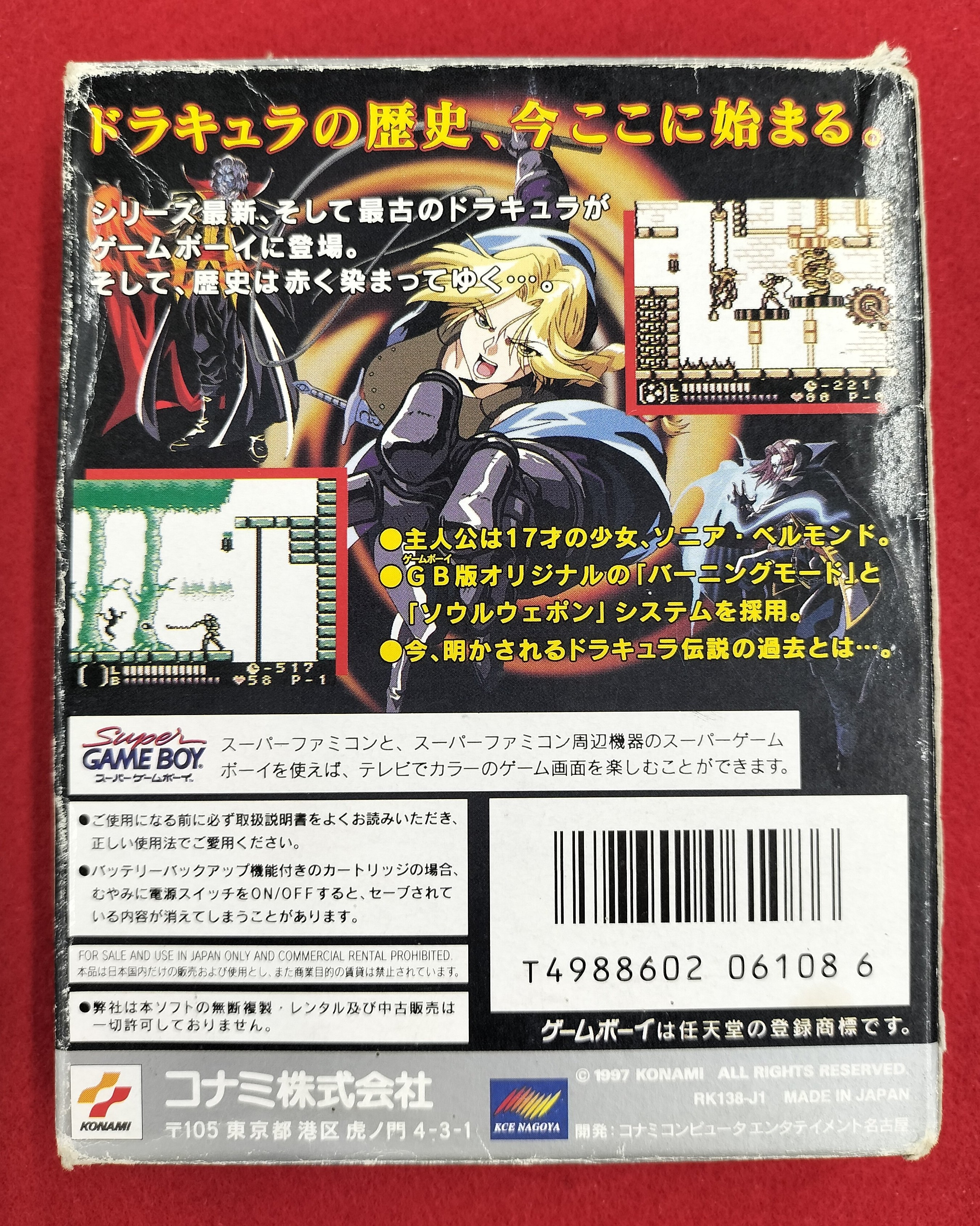 ゲームボーイソフト 悪魔城ドラキュラ 漆黒たる前奏曲 KONAMI ゲームボーイソフト KONAMI悪魔城ドラキュラ 漆黒たる前奏曲ゲームボーイソフト■注意事項店舗詳細ページに記載内容をご確認の上、ご注文いただきますようお願いいたします。