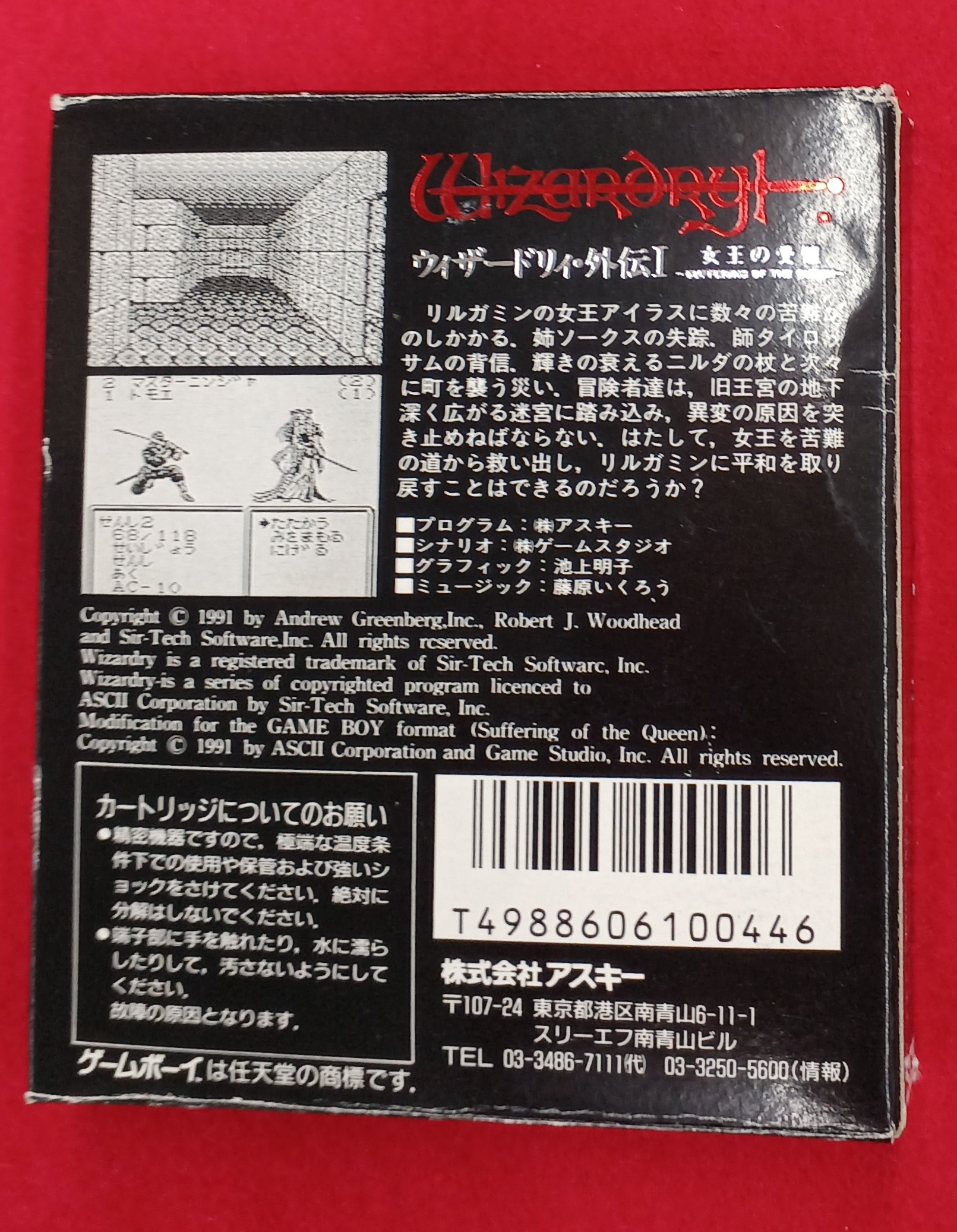 ゲームボーイソフト ウィザードリィ・ 外伝Ⅰ 女王の受難 ASCⅡ ゲームボーイソフト ASCⅡウィザードリィ・ 外伝Ⅰ 女王の受難ゲームボーイソフト