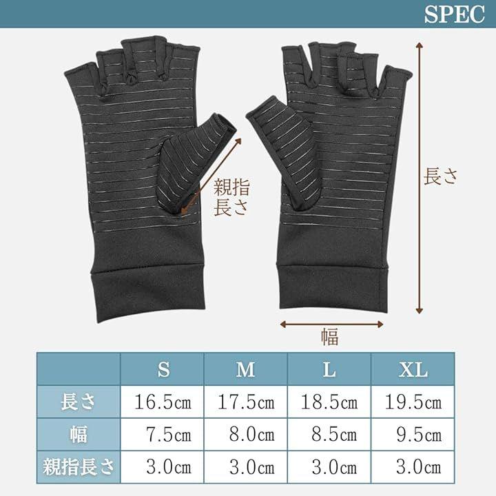 「商品詳細」セット内容:両手1セット サイズ:(S)長さ16.5cm 幅7.5cm 親指長さ3cm / (M)長さ17.5cm 幅8cm 親指長さ3cm / (L)長さ18.5cm 幅8.5cm 親指長さ3cm / (XL)長さ19.5cm 幅9.5cm 親指長さ3cm
