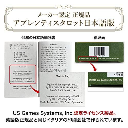 ?【正規品 日本語版】「タロットの定番」であるライダータロットカードを柔らかい繊細なタッチ、色合いで再現したユニバーサルタロットを基に作られたアプレンティスタロットの日本語版 最もスタンダードな「ウェイト版」「ライダー版」 ?【US Games Systems, Inc.認定 】US Games Systems, Inc.のアプレンティスタロット英語版と同じイタリアの工場で印刷されているため、英語版とカードの品質・絵柄等は全く同じです。 ?【初心者にやさしい】全てのカードに日本語の意味が記載されているため、これからタロットを始める方には得におすすめです。 ?【日本語解説書付き】英語版の解説書の日本語翻訳解説書(全P35)がカードと一緒に梱包されています。それに加えて、日本語解説書90ページも付属されているので、すぐにリーディングを始めることができます。 ?【サイズ】箱 12.3cm × 7.2cm × 3cm 237g カード 12cm × 7cm 【カード枚数】大アルカナ22枚 小アルカ56枚 付録カード2枚 合計80枚 【カード専用収納袋】カードを保護する専用収納袋付き ※カード専用のため、箱は入りません。予めご了承ください。