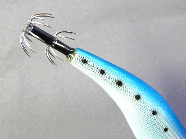 さらに、刺さり抜群の細軸のシャープなフックをセッティングしたことで、イカが餌木に触れただけでフッキング。また、このフックを採用したことで海草を切りやすく、フックに海草が残りにくくなりヒット率が高くなりました。