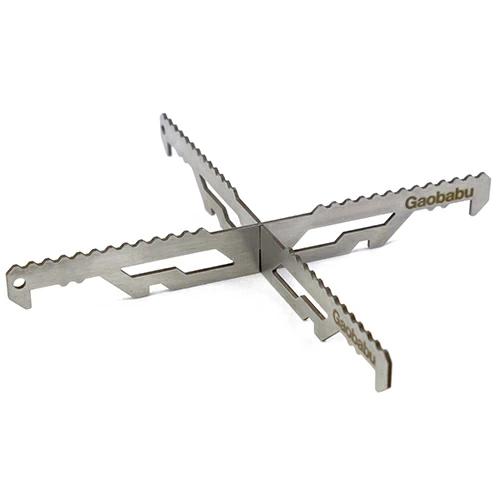 メスティンやシェラカップを風防コンロとして使用できるスリムなクロス五徳です。メスティンやシェラカップがコンロと風防の役割を果たします。熱源は固形燃料やアルコールバーナーなど、工夫次第で変えることができます。他にも、直径が58mmから62mm、および90mmから123mmの円形のクッカーにも対応可能です。注意:燃焼時の酸素不足を避けるため、コンロ(容器)の開口部はクッカーの底の1/3以上空いている必要があります。