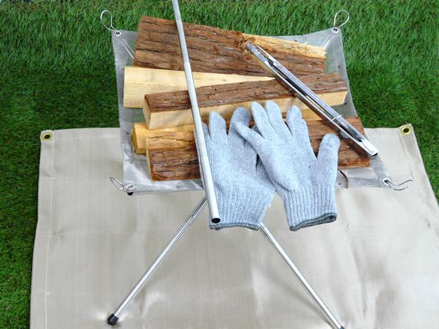 ※焚き火の最中は付属の火バサミや軍手を使うなど十分注意して下さい。