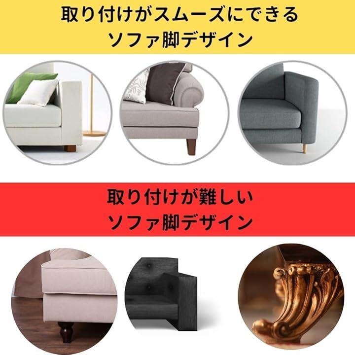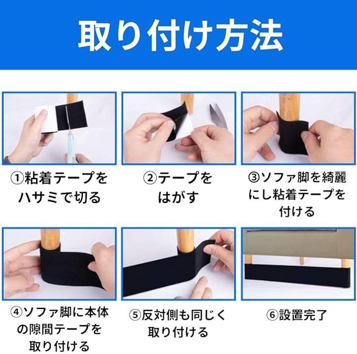 「取り付けが簡単」取り付けたいソファや家具の脚部分に、付属の粘着テープを貼り付けてその上から隙間テープを被せるだけで取り付け完了です。