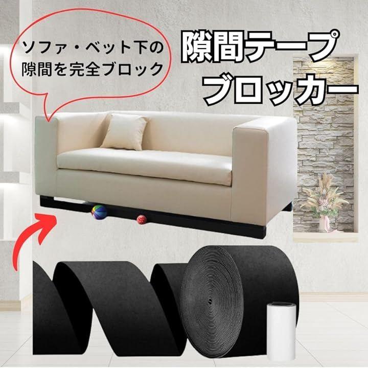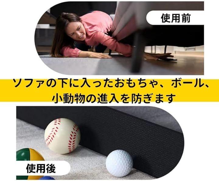 「超便利隙間テープ」ソファの下に貼り付けることでおもちゃやペットが入り込むのを阻止します。