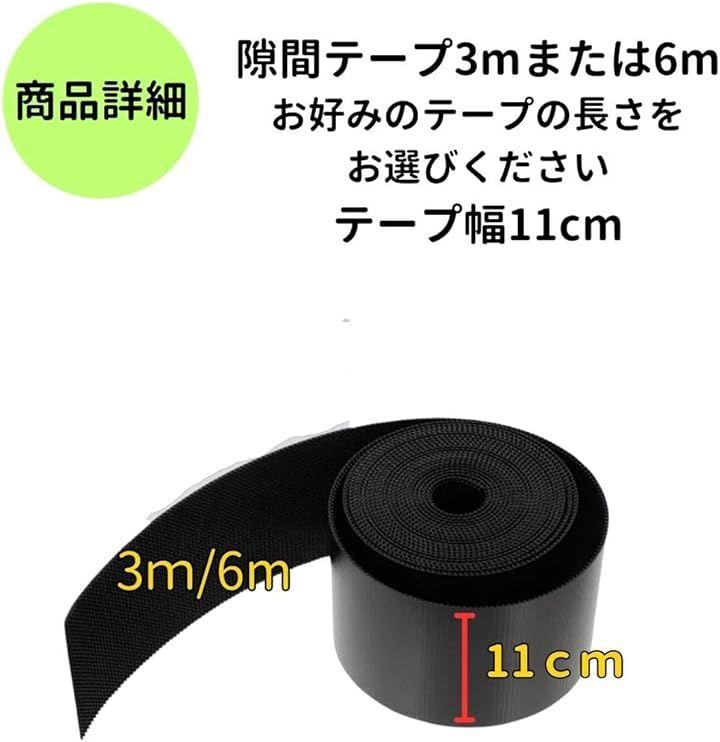 「商品詳細」3mx幅11cm、6mx幅11cm「カラー」ブラック「セット」隙間テープ+粘着テープ