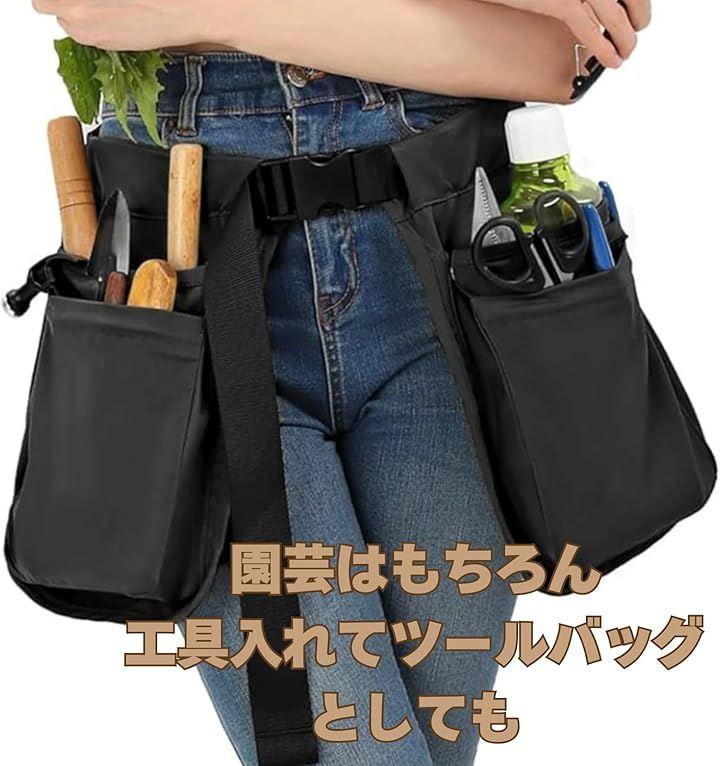 4. エプロンと一体化。作業中に土や葉で服が汚れるのを防ぎながら、必要な道具を身につけられる優れものです。