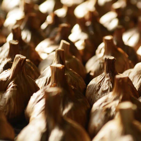 厳選した白いにんにくが温度と湿度の調整だけで『艶のある黒いにんにく』に変化する。